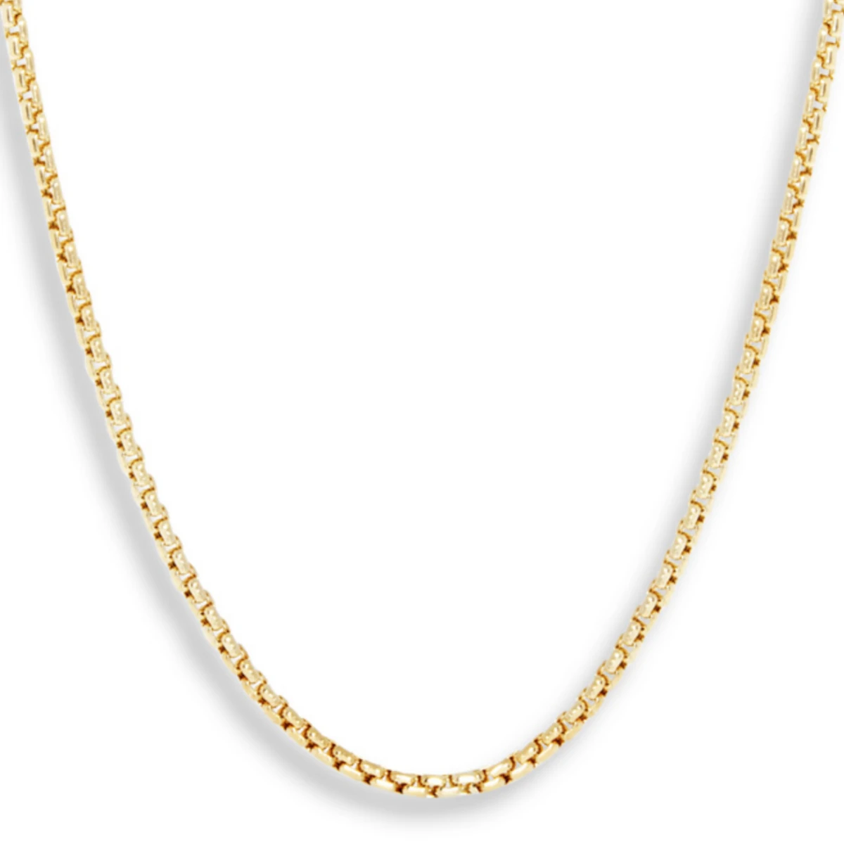 10K Yellow Gold Diamond Cut Box Chain. Crafted from Solid 10K Yellow Gold and then Diamond Cut for extra shine. New twist to a long time classic. This rounded style Box Link Chain is intricately crafted with diamond cuts which make this 3D Necklace sparkle at every angle without diamonds! Lightweight made to get you a bigger look for a great value.