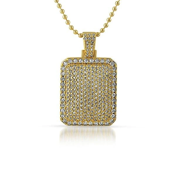 Bling Bling Mini Dogtag Hip Hop Pendant. This iced out simulated diamond pendant shines bright.  Each stone is set with prongs, no glue!  Elevate your swag and stand out from the crowd with this unique bling bling pendant around your neck.  Get the bustdown look and feel of a real diamond hip hop pendant for a fraction of the cost.  Quality finish and craftsmanship that is made to last.  Shine better and order today.