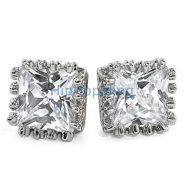Crown Princess Cut CZ Earrings. Get the maximum bling bling shine with these iced out earrings. Stones are VVS Simulated Diamonds which are Prong Set and crafted to perfection. Ice up your ears with these amazing hip hop earrings. Order your Hip Hop Bling Earrings today.