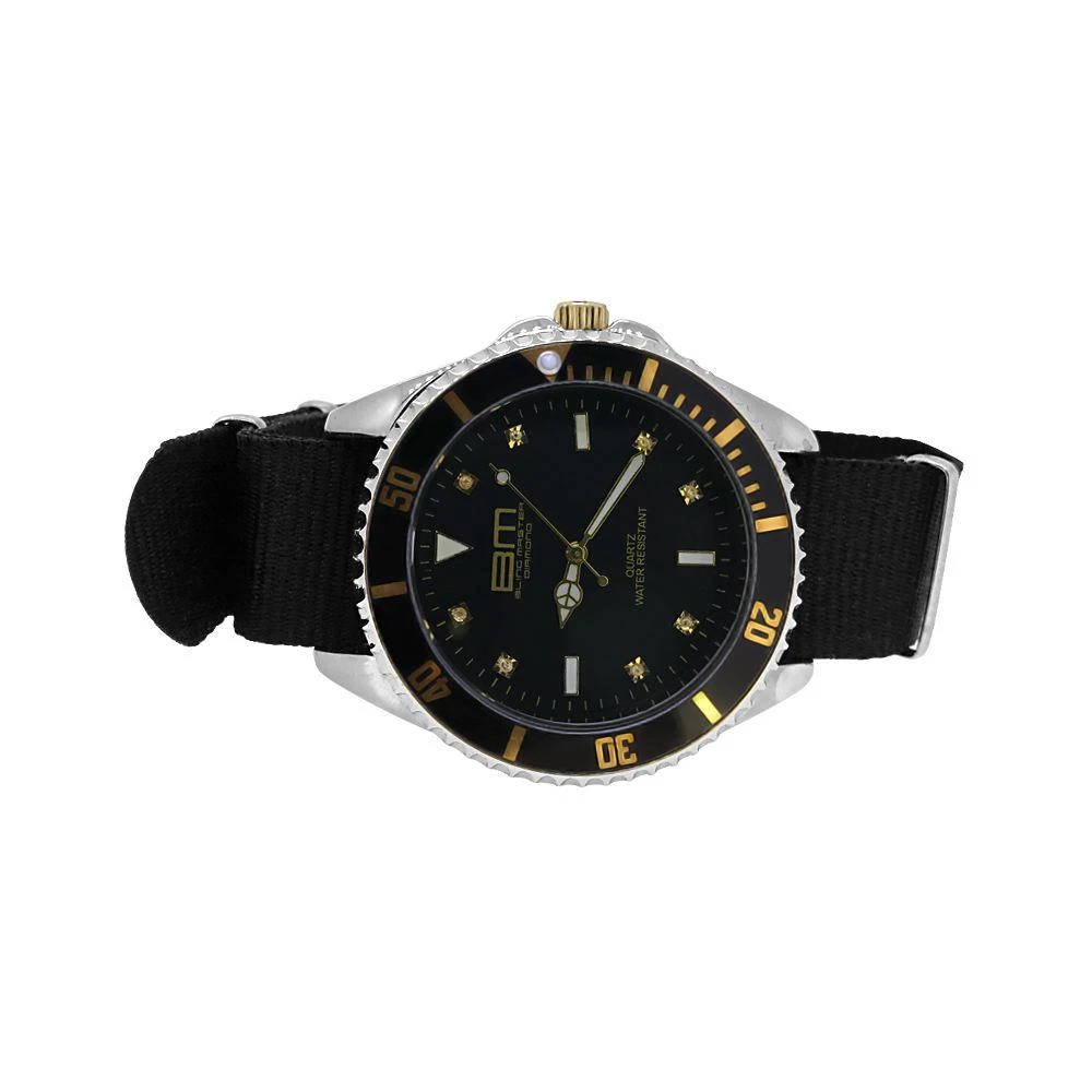 Genuine Diamond Bling Master Divers Sport Watch Gold With Black Nylon Strap