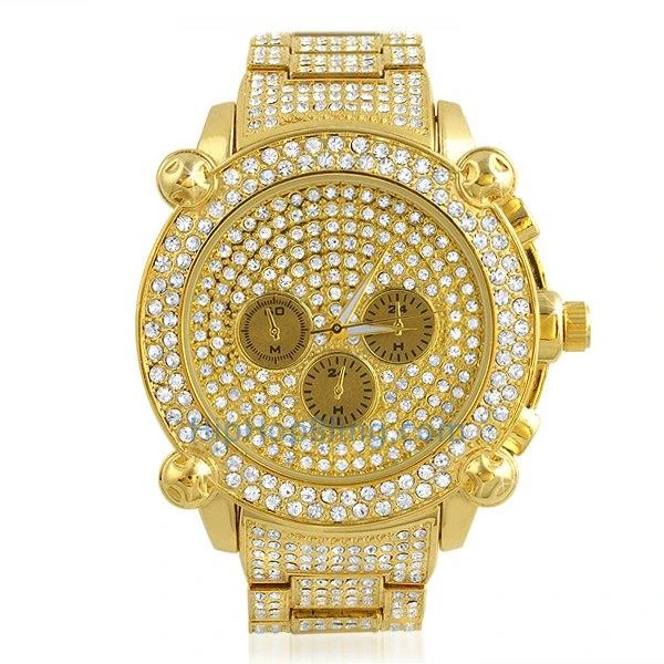 Gold Chrono Bling Bling Custom Hip Hop Watch