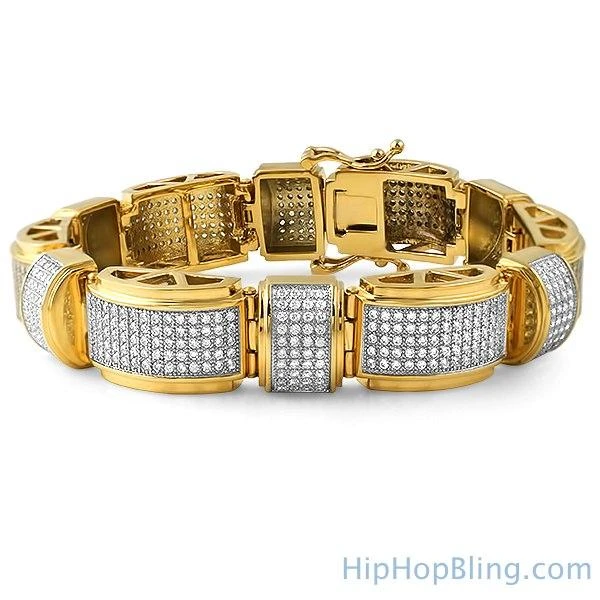 Gold Stainless Steel Domed Bar Bling Bracelet