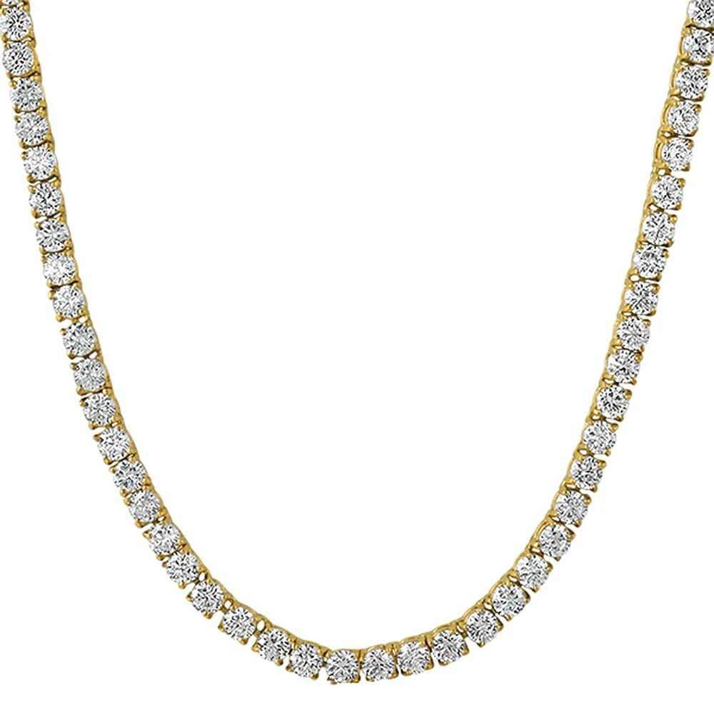 Best Selling Hip Hop Tennis Chain. Hand made with Strong High Polished Stainless Steel Material. Each stone is set by hand with 4 prongs by an experienced jeweler. The Stainless Steel is IP Gold plated to give this Bling Bling Tennis Chain the most realistic and longest lasting Gold shine. This is the highest Quality and most realistic Tennis Chain Available (without going with Genuine Diamonds and gold for tens of thousands of dollars!) uGleam.com brings you the best at prices that will blow you away!