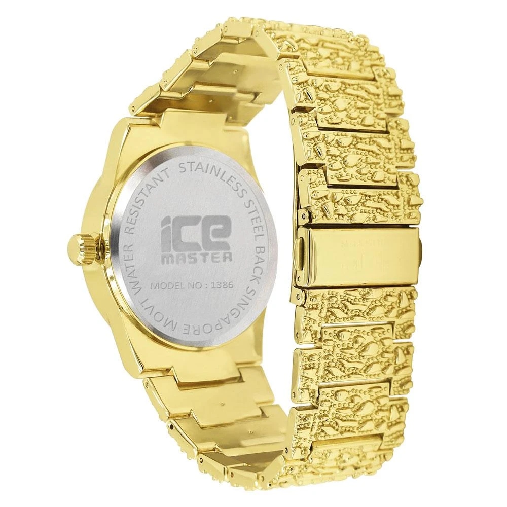 Golden Nugget Iced Out Double Bezel Hip Hop Watch. Unique and beautiful Golden Nugget detailed watch with a bling bling double bezel.