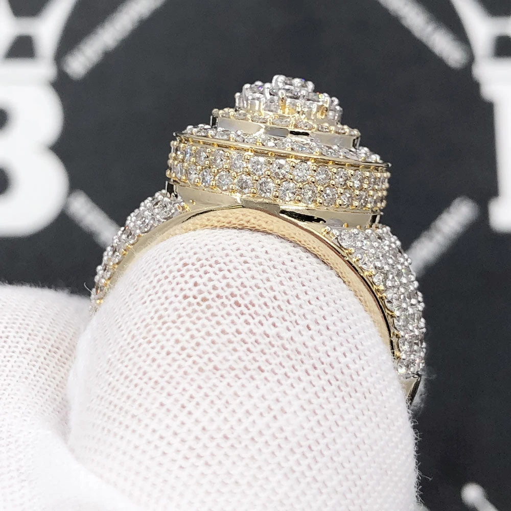 Layered Cluster 3.55cttw Diamond Ring 10K Yellow Gold. Quality crafted Diamond ring iced out with a bling bling shine.  Custom Designer looking Mens Bling Bling Ring. Precision detailed prong Diamond Setting on this Diamond iced out ring. Beautiful big and bold look. Popular style Hip Hop Bling Bling Ring is crafted with 10K Yellow Gold and Genuine Natural Diamonds.