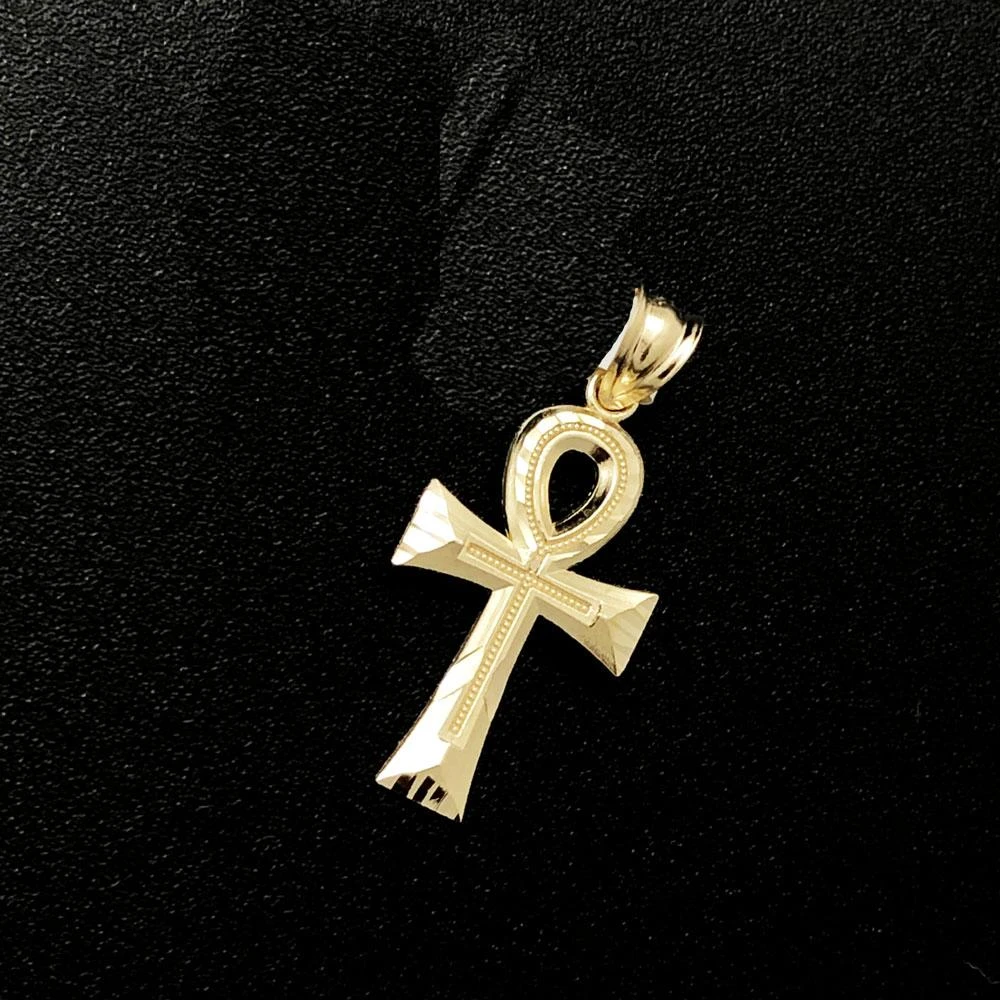 Mini Ankh DC 10K Yellow Gold Pendant.  Crafted from Solid 10K Yellow Gold and highly detailed with Diamond Cuts for added sparkle. All real Gold quality made at an affordable price.