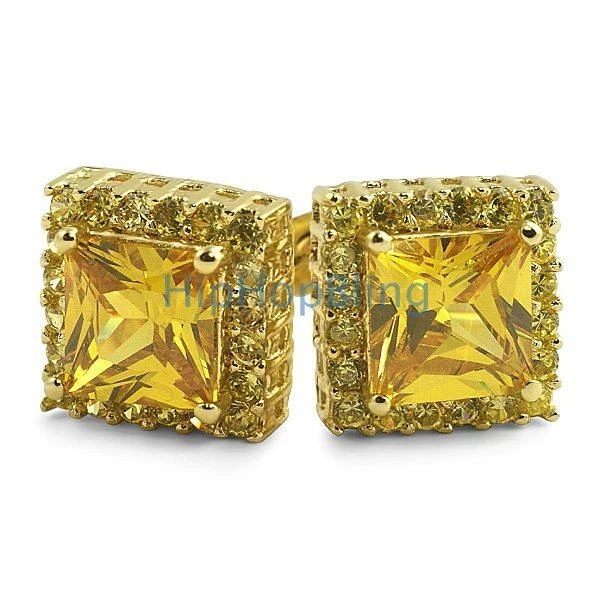Princess Bling Border CZ Earrings. Get the maximum bling bling shine with these iced out earrings. Stones are VVS Simulated Diamonds which are Prong Set and crafted to perfection. Ice up your ears with these amazing hip hop earrings. Order your Hip Hop Bling Earrings today.