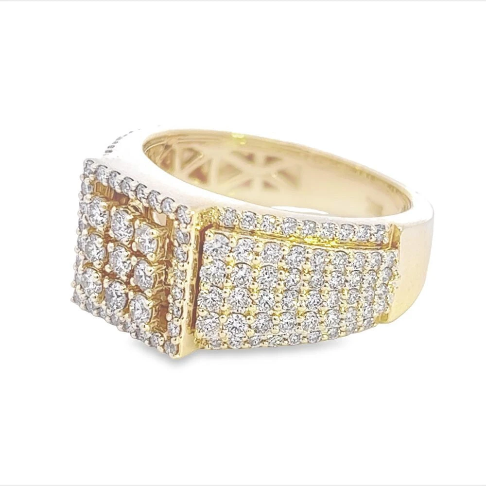 Raised Box Diamond Ring 2.15cttw 10K Gold. Quality crafted Diamond ring iced out with a bling bling shine.  Custom Designer looking Mens Bling Bling Ring. Precision detailed prong Diamond Setting on this Diamond iced out ring. Beautiful big and bold look. Popular style Hip Hop Bling Bling Ring is crafted with 10K Yellow Gold or 10K White Gold and Genuine Natural Diamonds.